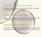 En synergie, ces ingrédients travaillent pendant la nuit pour transformer votre peau : plus lumineuse, plus ferme et visiblement unifiée au réveil.